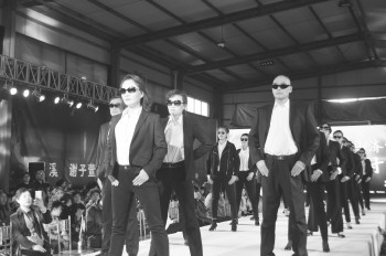 29日,由济宁老年大学、济宁模特协会、济宁市关工委才艺辅导团等联合举办的“2017中国(济宁)孔子国际时装周首届中老年模特服饰大赛”在济宁老年大学新校区训练馆举行。本次活动共有8支中老年模特团队参赛,现场参赛队伍各具特色,赢得台下观众阵阵喝彩。图为济宁老年大学模特队队员在走秀。