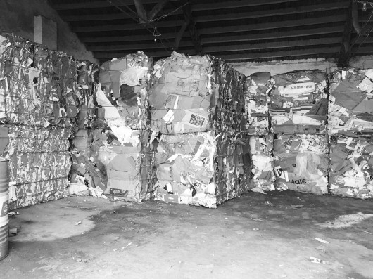 陵西大道一废品回收站,废纸打包好放在仓库内,再发到纸业公司。
