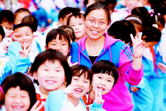 济南校园里快乐的师生。 济南市教育局供图