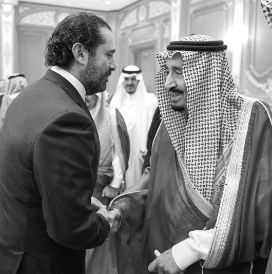 11日,在沙特首都利雅得,沙特国王萨勒曼与哈里里会面并握手。