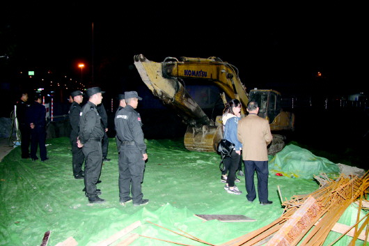 为避免在采暖季加重大气污染,济南市规定,自本月15日起至明年3月15日止,未经市政府批准的各类土石方工程都要停工。图为天桥区综治办带领保安队员,夜查辖区内工地停工情况。(资料片)