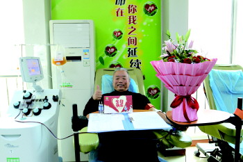 14日,李继银像往常一样走进济宁市中心血站,捐献成分血。这是他最后一次奉献热血了,15日就是他60岁生日,他将从坚持了17年的无偿献血队伍中“光荣退休”了。“献血是与人与已都有利的好事,如果让我从头再来,我还会这样做。”李继银这样说。