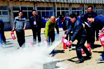 沂源四中举行灭火器使用培训,提高校园消防能力。