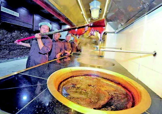 宏济堂利用“九昼夜精提精炼法”金锅熬胶。