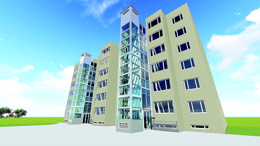 这个小区装的电梯采用的是装配式建筑,像搭积木一样搭电梯。段连存说,电梯设计方案采用全装配式钢结构,工厂拼装、现场分段整体吊装拼接,保证最小限度的现场施工作业,尽量减少现场扰民施工。