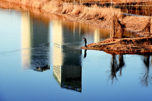 因持续低温,12月11日清晨,德州岔河水面已被一层薄薄的冰封住,熟悉的冬季就要来了。本报记者 马志勇 摄