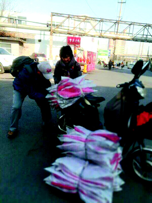 11日,全国爱国拥军模范齐亚珍与爱心人士王海东、王青带着30件崭新的羽绒服来到本报编辑部。齐亚珍这样的爱心捐助已经持续了三年,去年和前年,齐亚珍一家曾经捐助了300多件崭新的羽绒服送给贫困孩子。