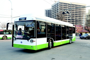 上路试跑的新式双电源无轨电车。
