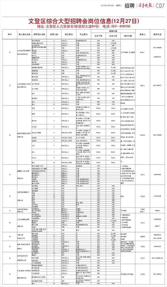 第WW07版:文登时讯·招聘