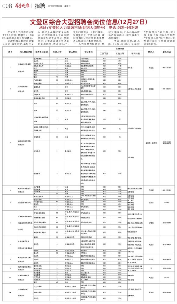 第WW08版:文登时讯·招聘