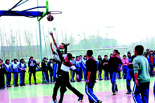 学生们参加篮球赛