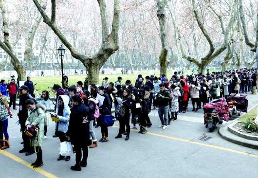 12月23日,南京东南大学考点,考生们排队准备进场考试。当日,2018年全国硕士研究生招生考试正式开考。 新华社发