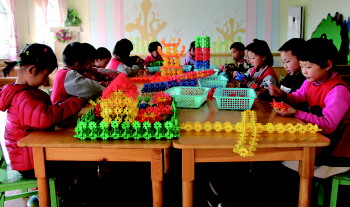 沂源县悦庄镇龙山幼儿园开展“放飞梦想,创意插塑”为主题的雪花片插塑比赛。(宋作梅)