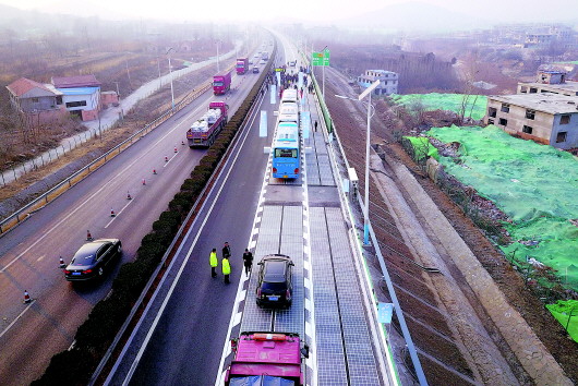 28日下午,全国第一条光伏高速公路通车。 本报记者 周青先 摄