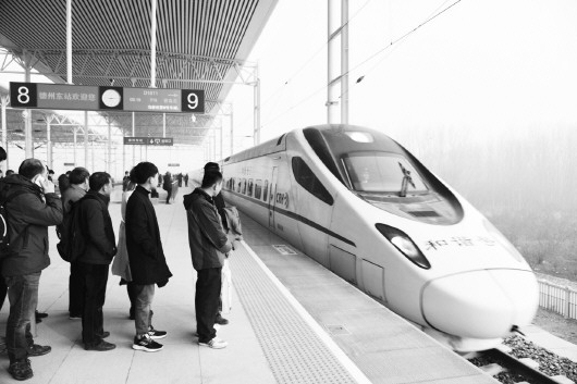 9点16分,首列由石家庄开来的D1611次动车组抵达德州东站。