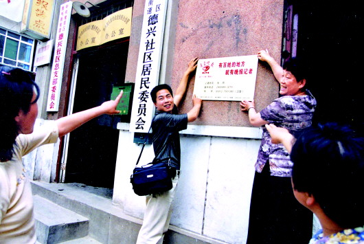 在济南市槐荫区振兴街德兴街社区,挂起记者大名片,与百姓的心贴得更近了。 本报记者 徐延春 摄