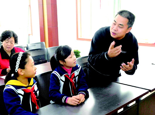 在济南无影山社区,张刚和孩子们交流。