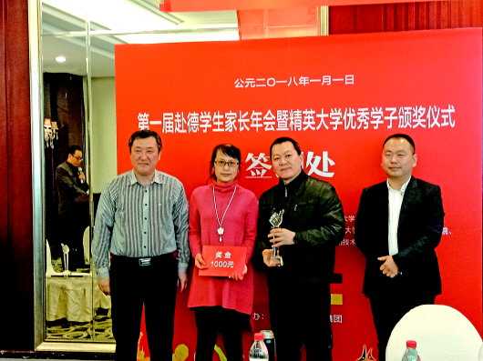 本报1月3日讯(记者 尹明亮) 1月1日,在济南,18位在德国留学学生的家长从全省各地会聚在一起,参加德欧国际教育举行的优秀学子颁奖仪式。18个家庭,每个父母都替在德国的子女领取了一个沉甸甸的奖杯,这些学生放弃了在国内读一本高校的机会,从德欧国际教育起步,如今都走进了德国的精英大学。