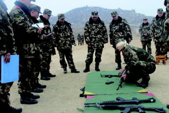 蒙眼组装枪支。