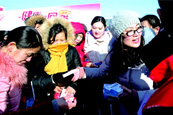 1月26日上午,几名在日照工作的流动人口迫不及待地打开刚刚领取的“健康包”,翻看里面的健康知识宣传材料和健康用品。当日,日照市卫计委和东港区政府在日照火车站广场举办2018年“把健康带回家”流动人口卫生计生关怀关爱专项活动,目的是向在日照工作生活的流动人口宣传倡导健康文明生活方式,让他们在春节期间将“健康身体、健康知识、健康用品”带回家,不断提高健康素养水平,营造全社会关心关爱流动人口健康的社会氛围。