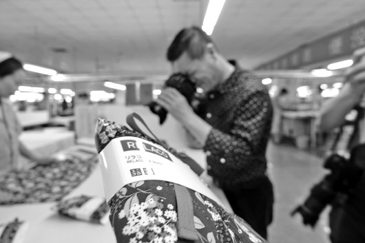 即发车间里为优衣库代工的衣服。(资料片) 本报记者 任磊磊 摄