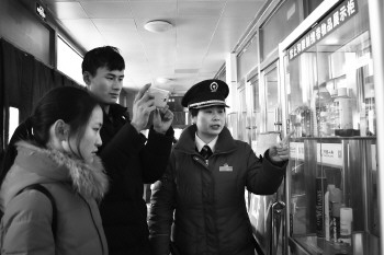 兖州火车站工作人员向乘客讲解乘车注意事宜。