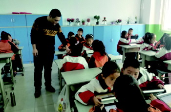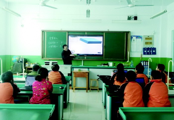 馨苑小学教师使用“万校云”平台在上课。