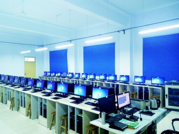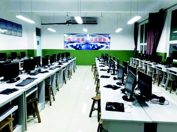 萌山小学微机室。