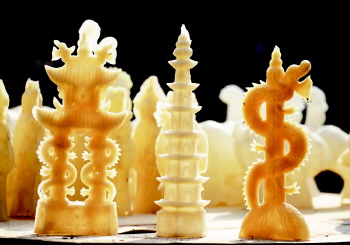 金乡糖供艺术发端于清代中期,距今已有300余年的历史。刘玉彬就是金乡糖供的代表人物,也是刘氏家族第五代传人。刘玉彬介绍,制作糖供需要浸泡模具、熬糖、倒制、起模等五步完成。“起模时得将模具一瓣一瓣拿开,用力要匀,不然倒制好的糖供易碎。”刘玉彬说,做糖供是门技术活,为世代家传,秘不授人。