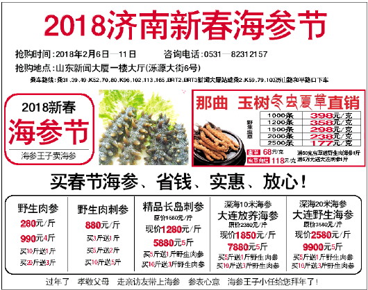 抢购时间:2018年2月6日—11日 咨询电话:0531—82312157
