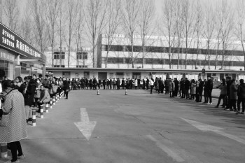 同样的情况,在城区其他交警大队也有出现。当天上午,在位于新元路上的高新区交警大队违法处理中心,大门外停满了前来办违章处理业务的车辆,新元路拥堵起来,执勤交警在现场疏导交通。处理中心的院子里,前来处理交通违章的市民排成一条“长龙”。