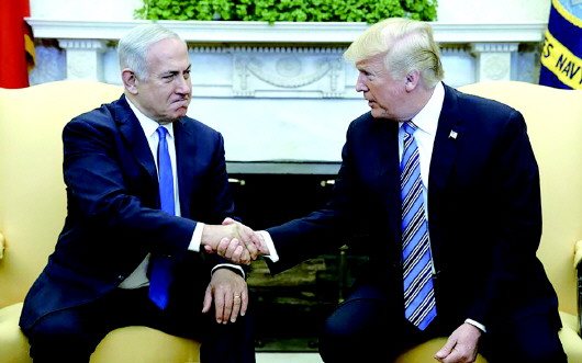 当地时间5日,美国华盛顿,美国总统特朗普会见到访的以色列总理内塔尼亚胡。