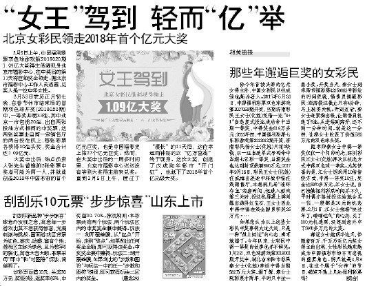 北京女彩民领走2018年首个亿元大奖
