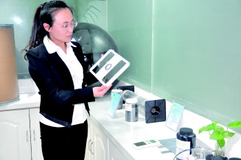 工作人员介绍石墨烯制造的产品。 本报记者 李德领 摄