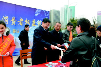 3月15日,交通银行潍坊分行联合人民银行、银监分局在风筝广场举办“金融消费者权益日”公益活动。活动现场设投诉台,倾听客户心声;设咨询台,接受现场客户业务咨询;设金融知识有奖答题展板,广泛普及金融知识。