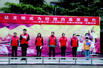 共建文明校园活动 为营造一个文明、舒适、整洁、高雅的师生生活环境,日前,张店区潘南小学开展了“与文明同行,共建文明校园”主题活动。(赵春)