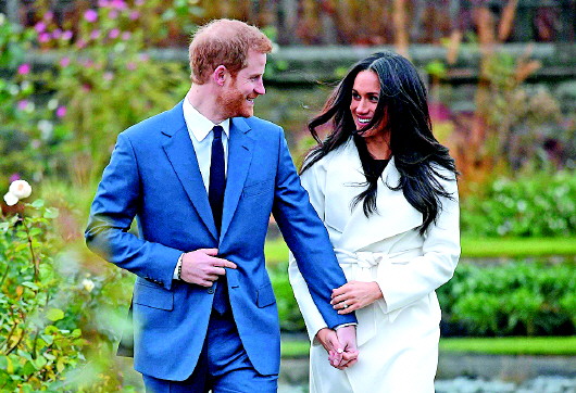 英国哈里王子和未婚妻梅根。