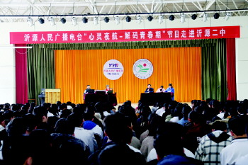 解惑答疑 为帮助高三学生以良好的心态迎接高考,近日,沂源二中邀请县广播电台“心灵夜航—解码青春期”栏目工作人员与高三学生解惑答疑。(张吉爱)