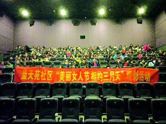 本报讯(记者 张九龙 通讯员 郗欣) 阳春三月,万象更新,在这生机盎然的季节,迎来了第108个国际妇女节。为纪念这一具有历史意义的节日,全面贯彻党的妇女政策,营造浓郁的节日气氛,丰富社区女性同胞的业余文化生活,增加社区女性同胞的幸福感,蓝天苑社区于3月8日上午开展了“美丽女人节 相约三月天”为主题的庆“三八”妇女节观影活动。