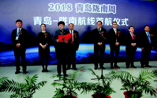 3月25日上午11时10分,“2018年陇南周 青岛-西安-陇南航线首航仪式”在青岛流亭国际机场隆重举行。青岛市、陇南市相关领导,青岛国际机场集团、山航青岛分公司相关负责人出席了首航仪式。