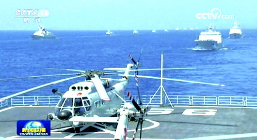 受阅舰艇按作战编组组成战略打击、水下攻击、远海作战、航母打击、两栖登陆、近海防御、综合保障等7个作战群。受阅飞机组成舰载直升机、反潜巡逻作战、预警指挥、远海作战、对海突击、远距支援掩护、制空作战等10个空中梯队,在受阅舰艇编队上方凌空飞过。