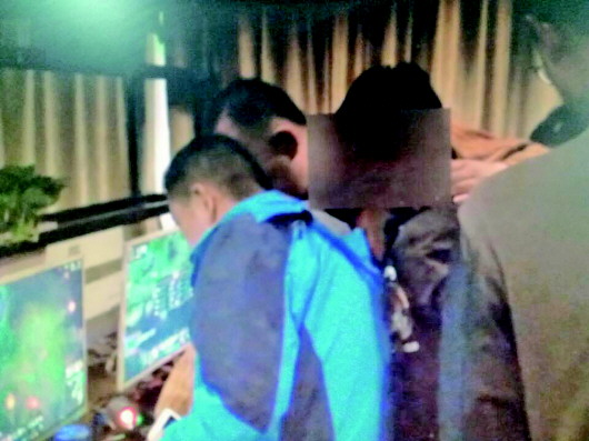民警在检查嫌犯的电脑
