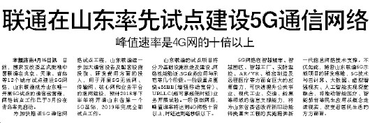 联通在山东率先试点建设5G通信网络