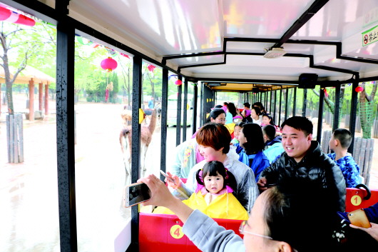 车辆抵达园区后,众人首先乘坐了观光小火车,以更亲近、更自由的方式,穿越世界“五大洲”与动物超亲密互动,感受“与兽同行”的非凡体验。整个乘车游览区以“地理生境”展示分区,大家乘车穿越了非洲草原、高寒山地、澳洲山林、狂野地带、亚洲草原等5个区域,呆萌的羊驼、温顺的梅花鹿、活泼的骆驼、狂野的狮子……200种各类珍稀保护动与大家亲密互动,没有牢笼的约束,只有人与自然的和谐。“终于见到了真的梅花鹿,好可爱,它还冲我吐舌头呢。”10岁的莫寒(化名)兴奋地喊着。