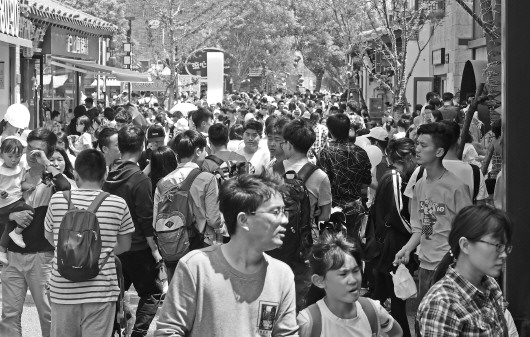 小长假第一天,宽厚里挤满了各地慕名而来的游客。 本报记者 周青先 摄