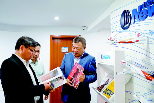 山新传媒总经理刘占虎、副总经理赵春明一起向张国华会长汇报了山新传媒的机上媒体业务以及航空渠道的运营理念。