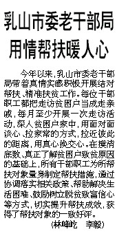 乳山市委老干部局 用情帮扶暖人心 今年以来,乳山市委老干部局带着真情实感积极开展结对帮扶、精准扶贫工作。每位干部职工都把走访贫困户当成走亲戚,每月至少开展一次走访活动,深入贫困户家中,用面对面谈心、拉家常的方式,拉近彼此的距离,用真心换交心。在摸清底数、真正了解贫困户致贫原因的基础上,所有干部职工为所帮扶对象量身制定帮扶措施,通过协调落实相关政策、帮助解决生活困难、鼓励树立脱贫致富信心等方式,切实提升帮扶成效,获得了帮扶对象的一致好评。 (林峰屹 李毅)