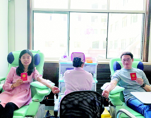 4月17日,注定是个阳光明媚的美好日子。当天,青岛市中心血站的二楼献血大厅迎来了一对新人——丁薇和陈靖,二人刚刚领取了结婚证,一起参加无偿献血。两位幸福的新人顺利捐献全血700毫升。