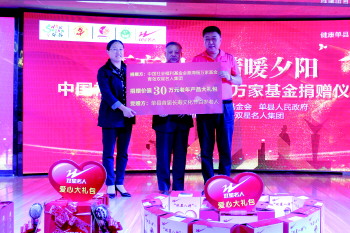 本报单县5月7日讯(记者 牟张涛 通讯员 傅子栋) 6日,由中国社会福利基金会、单县人民政府主办的“不忘初心 情暖夕阳”中国社会福利基金会福万家捐赠仪式在单县举行。青岛双星集团此次共捐赠209套爱心礼品,爱心礼品包含健身鞋、老年服,按摩锤、磁石护腰、防裂袜、按摩五件套,总价值30余万元,艺术家们捐赠10余幅作品。