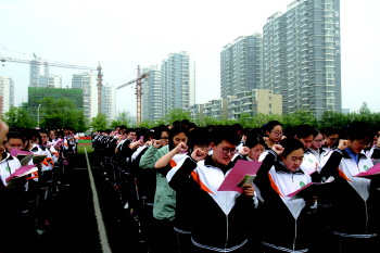 “我用青春的名义宣誓:我要用智慧踏过书山坎坷,我要用汗水浇灌学海希望……三十天,豪情万丈, 三十天,稳打稳干……奋战三十天,我们明天必辉煌灿烂!”操场上,学子们的誓言回荡在校园里。 本报记者 匡璇 摄影报道